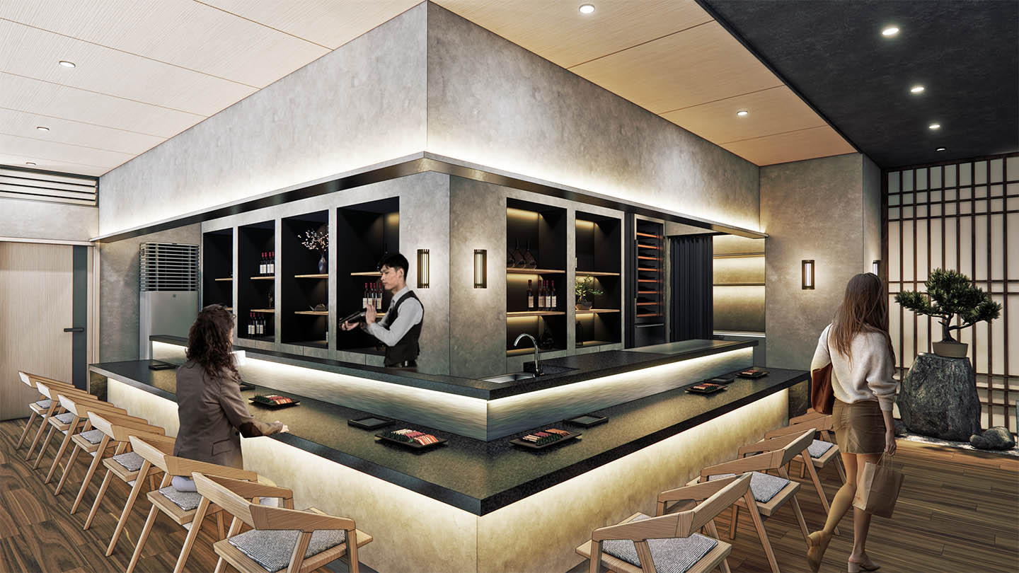 - Custom metal and glass elements that nod to industrial Tokyo influences.